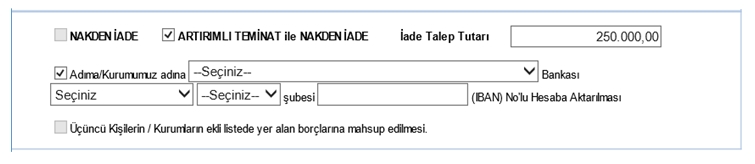 Gelir Yönetimi Daire Başkanlığı (I)’nın 4/4/2017 tarih ve 20668 sayılı yazısında yer alan “Mükellefler tarafından iade taleplerine ilişkin olarak her bir dönem için ayrı teminat mektubu verilmesi gerekmektedir.” İfadesi gereğince mükellefler tarafından iade taleplerine ilişkin olarak her bir iade dönemi için ayrı teminat mektubu/artırımlı teminat mektubu verilmesi gerekmektedir.