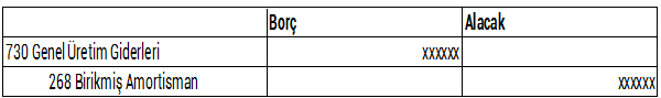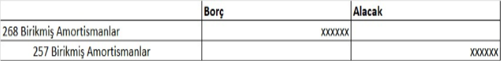Kira süresince 260 haklar hesabında izlenmesi sebebi ile amortisman kayıtları 268 Birikmiş Amortismanlar (-) hesabının alacağına kaydedilir.