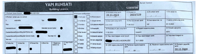 Bu hatırlatmaları yaptıktan sonra örnek bir yapı ruhsatı ekleyelim.