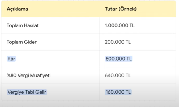 %80 kazanç istisnası sadece şahıs firmalarında değil, limited ve anonim şirketlerde de uygulanabilir.