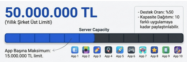 - En fazla 20 mobil uygulama: Mobil uygulama şirketi yılda en fazla 20 adet yazılımı, mobil uygulaması veya dijital oyunu desteklenir.