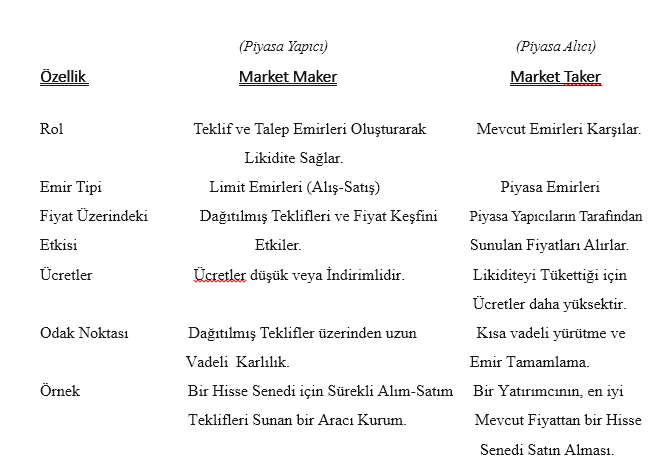 -Piyasa yapıcılar piyasaya likidite ve derinlik sağlarken, aynı zamanda alış-satış farkından yararlanırlar.