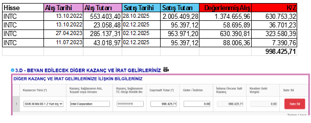 *Aynı gün içinde yapılan alım-satım işlemlerinde ağırlıklı ortalama fiyat bilgisi dikkate alınabilecek, ancak tevkifat matrahı ilk giren ilk çıkar yöntemine göre belirlenecektir.”