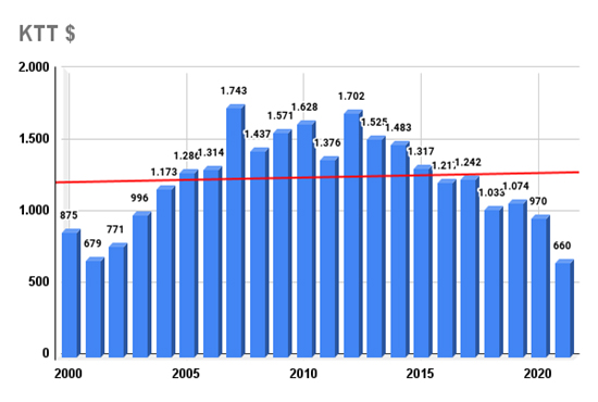 Kıdem tazminatı tavanının ABD Doları cinsinden meblağlarına ve ABD enflasyon oranlarına bakıldığında, 2000 yılında 875 $ iken, 2021 yılında 660 $ olmuştur ve enflasyon düzeltmesi dikkate alındığında USD Doları bazında bile daha düşük hale gelmektedir.