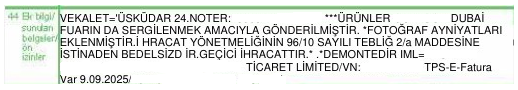 Örnek: Fuar için gerçekleştirilen geçici ihracat.