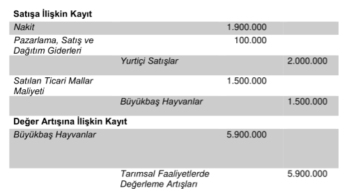 10 canlı varlığın satışından işletmenin elde ettiği nakit 1.900.000 TL’dir (100.000 TL’lik satış giderleri ortaya çıkmıştır).