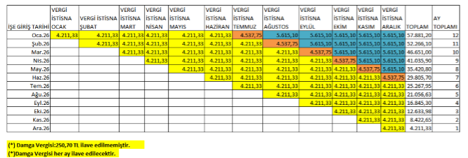 (*)3.Derece Engelli Ağustos ayında vergi dilimine(%20) giriyor.