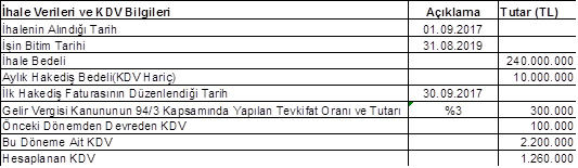(T).A.Ş.’nin, 30.09.2017 tarihinde Enerji Bakanlığına düzenlediği fatura şöyledir :